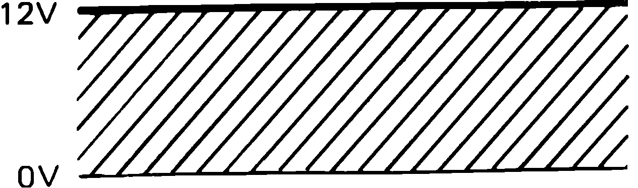 Turn ignition switch ``On.'' An indication of ECU memory will immediately begin. Input signal malfunctions are indicated by voltmeter pointer deflection. If the system is in the normal condition, voltmeter will read a constant 12 volts, Fig. 12. When input signal is abnormal, pointer deflection alternates between 0 volts and 12 volts every .4 seconds with a 2 second lag between each abnormal code. For example, pointer deflection between 0 volts and 12 volts eight times every .4 seconds with a two second lag, then repeated, indicates code 8; pointer deflection between 0 volts and 12 volts twice for .4 seconds with a two second lag, then repeated, indicates code 2. The diagram shown, Fig. 13, indicates codes 2 and 5 are abnormal.