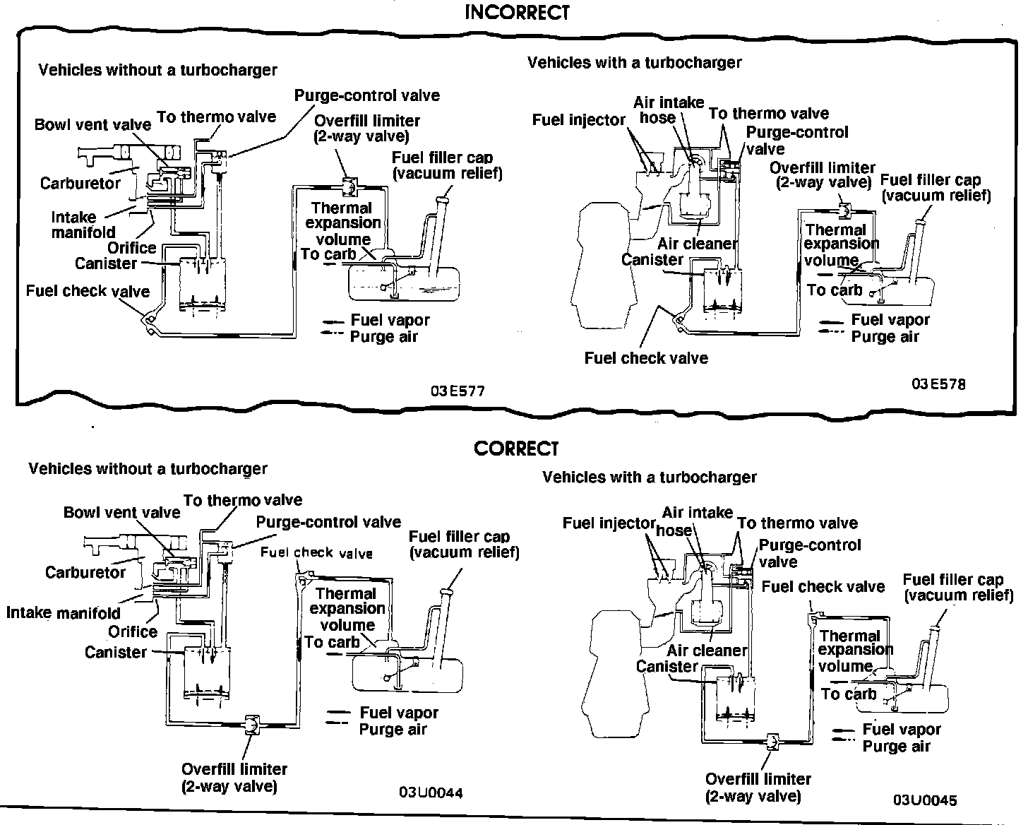 PAGE 25-5 EVAPORATIVE EMISSION CONTROL SYSTEM The fuel check valve is located downstream from the overfill limiter valve, rather than upstream as shown on Page 25-5 of the Service Manual. Revised illustrations are shown below.