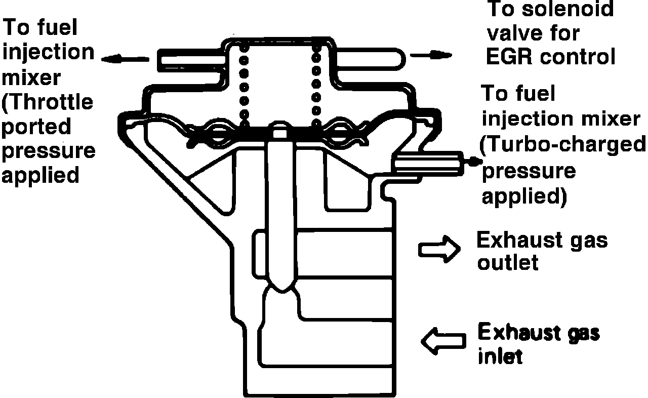 Exhaust gas recirculation, Fig. 24 is used to reduce oxides of nitrogen emissions in the vehicle exhaust. EGR uses partial recirculation of the exhaust gases from a port in the cylinder head to a port in the intake manifold.