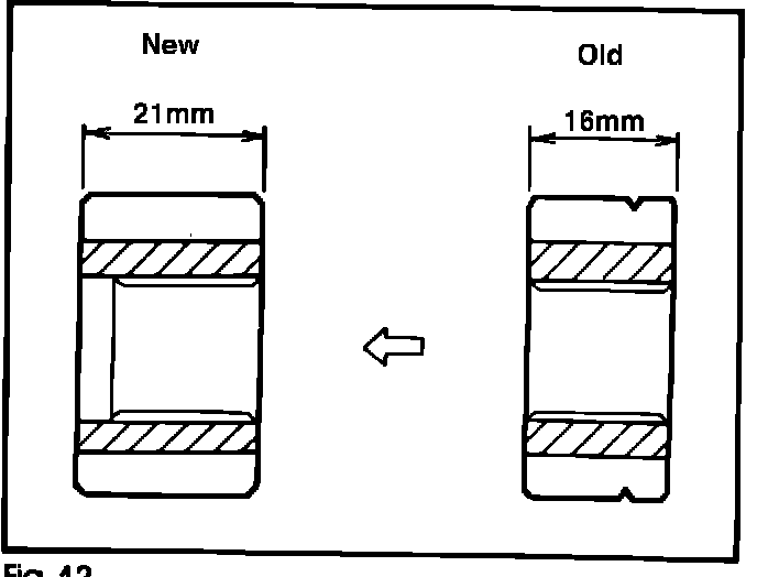 The spacer has been made shorter in length to accommodate the increased gear width. Refer to Fig. 13.