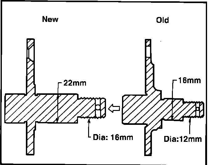 The dimensions of this hub have been changed as shown in Figure 7.