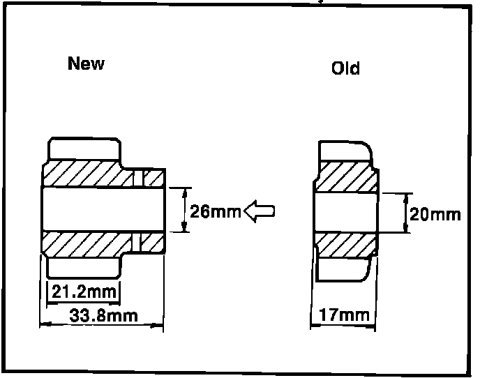 The reverse gear portion has been eliminated from the sleeve, and the sleeve dimensions have been changed as shown in Figure 8.