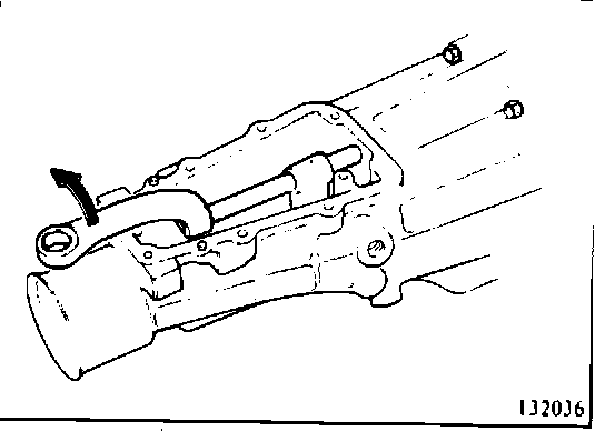 8. Push change shifter down to left side to move control finger from selector grooves. Then remove extension housing by pulling rearward. (13 2036)