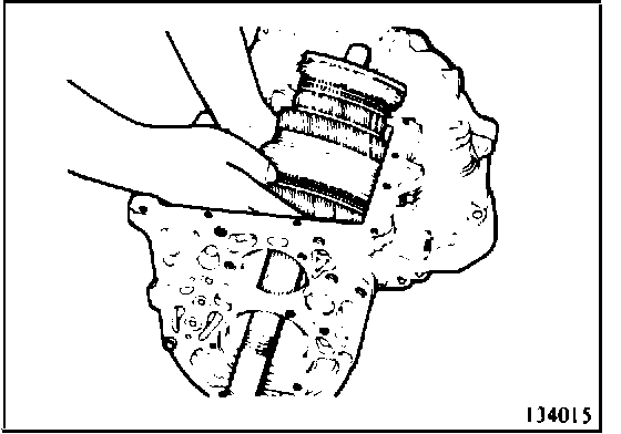 * Remove the overdrive gear, needle bearing, overdrive gear bearing sleeve, overdrive - reverse synchronizer assembly, reverse gear, needle bearing, reverse gear bearing sleeve and spacer from the main shaft.