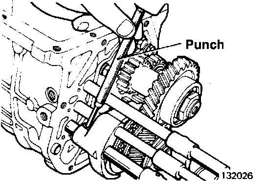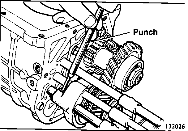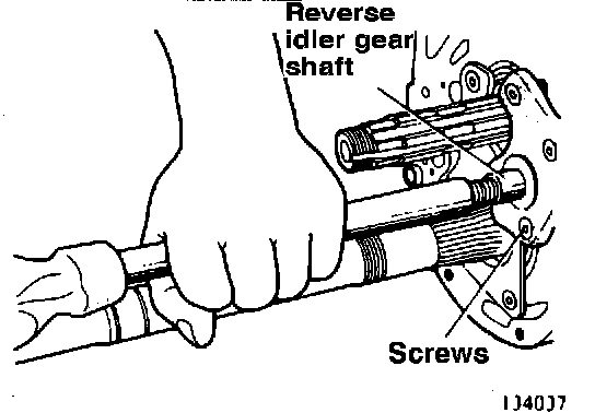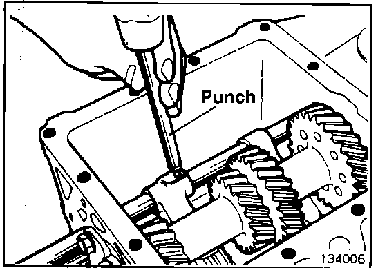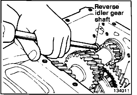 18. Loosen the reverse idler gear shaft by driving from inside the case. (134011)