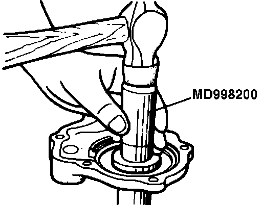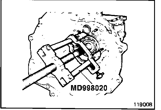 (24) Using Special Tool, Bearing Puller (MD99802 0), remove main drive gear bearing.