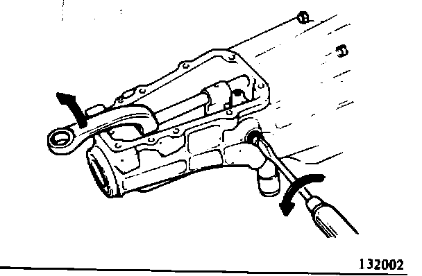(25) Apply recommended sealant to both sides of the extension housing packing and install the packing to the housing. Then, install the extension housing to the transmission case. When installing the housing, turn the change shifter fully down to the left. Make sure the forward end of the control finger is snugly fitted in the slot of the shift lug. Apply recommended sealant to the threads of extension housing attaching bolts before installation.