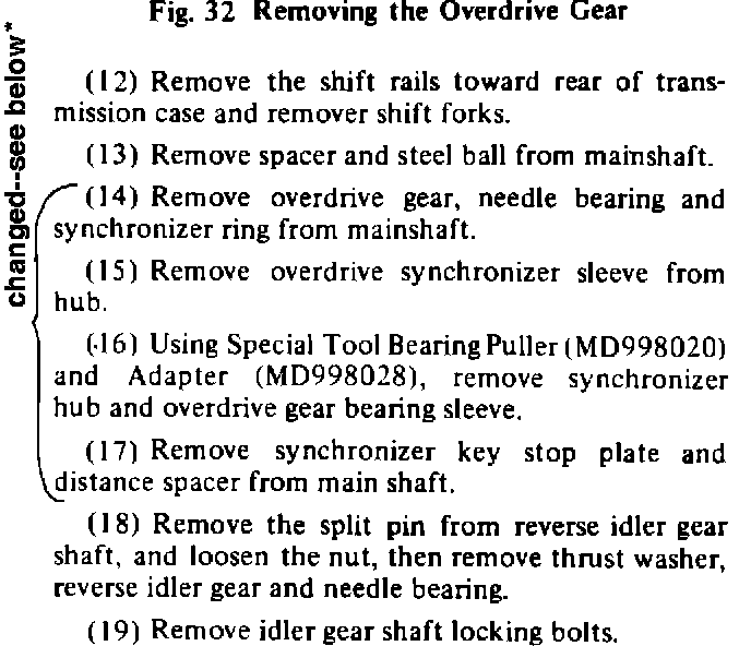 Spacer thickness has been changed to comply with adoption of reverse gear (which is serviced as a separate part) as shown in Figure 5.