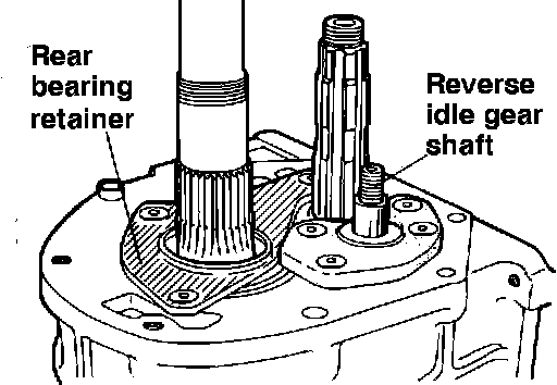 28. Remove the rear bearing retainer from the rear end of case.