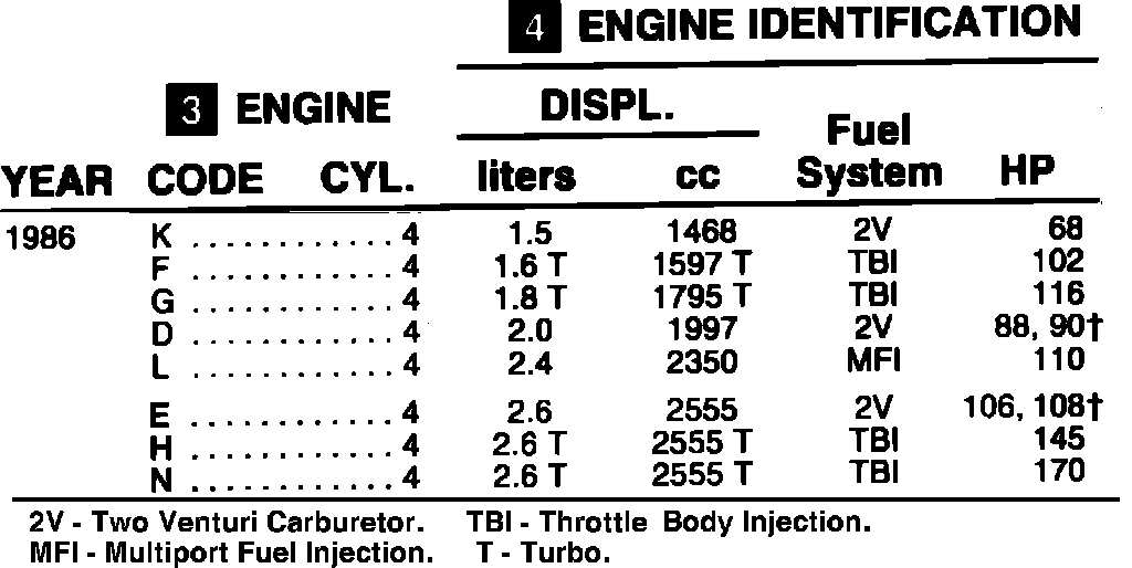 (4) ENGINE IDENTIFICATION: