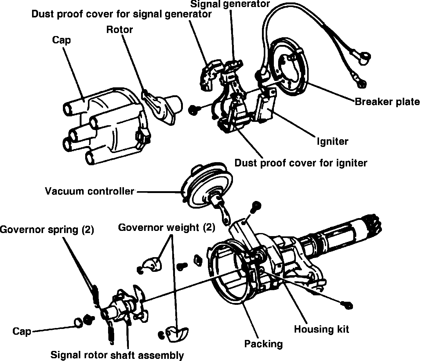 Refer to Fig. 12 distributor disassembled view and proceed as follows: