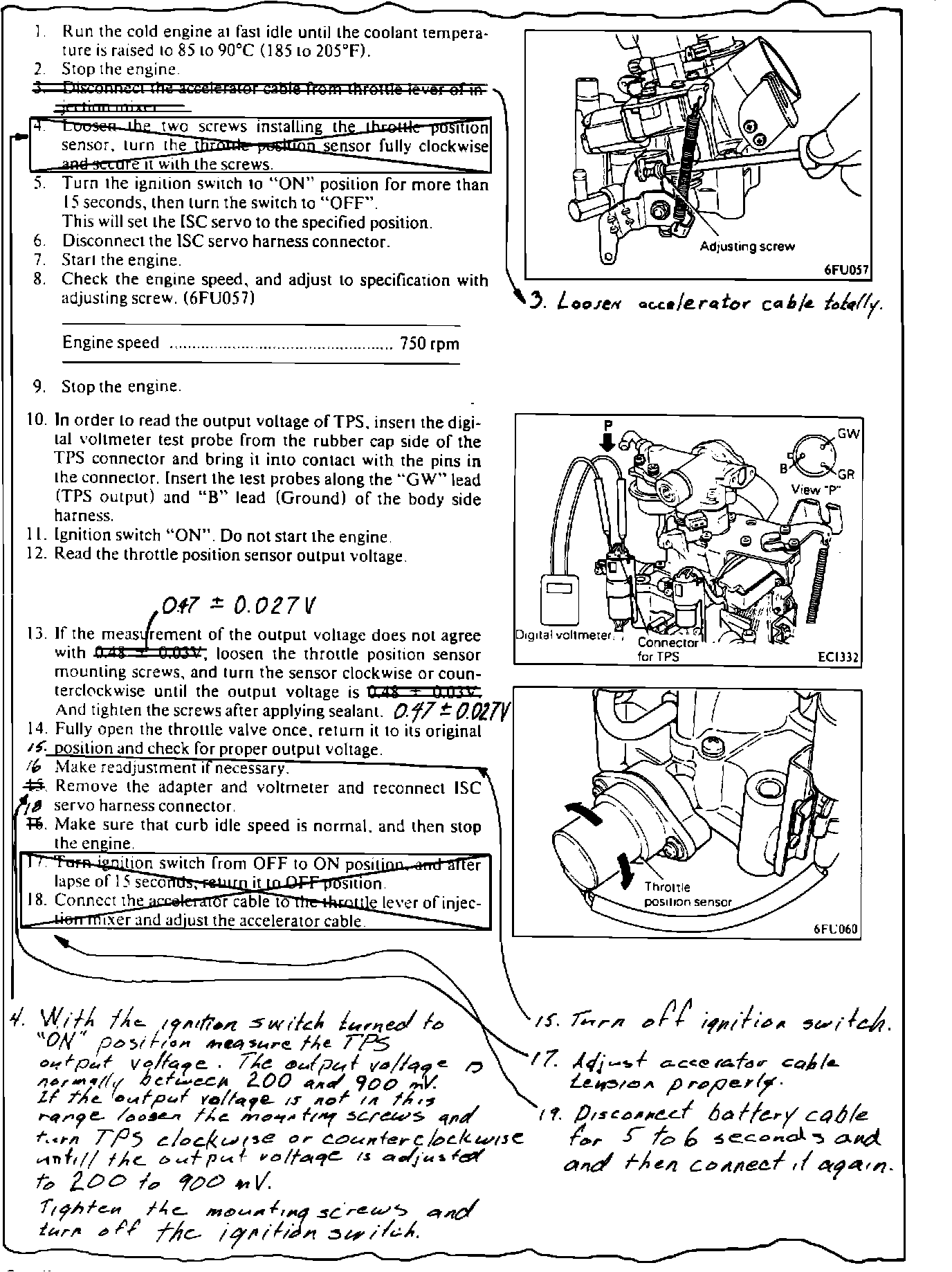 1986 STARION SERVICE MANUAL PAGES 14-11, 12 AND 1986 CORDIA/TREDIA SERVICE MANUAL PAGES 14-16 Revise procedures as shown below.