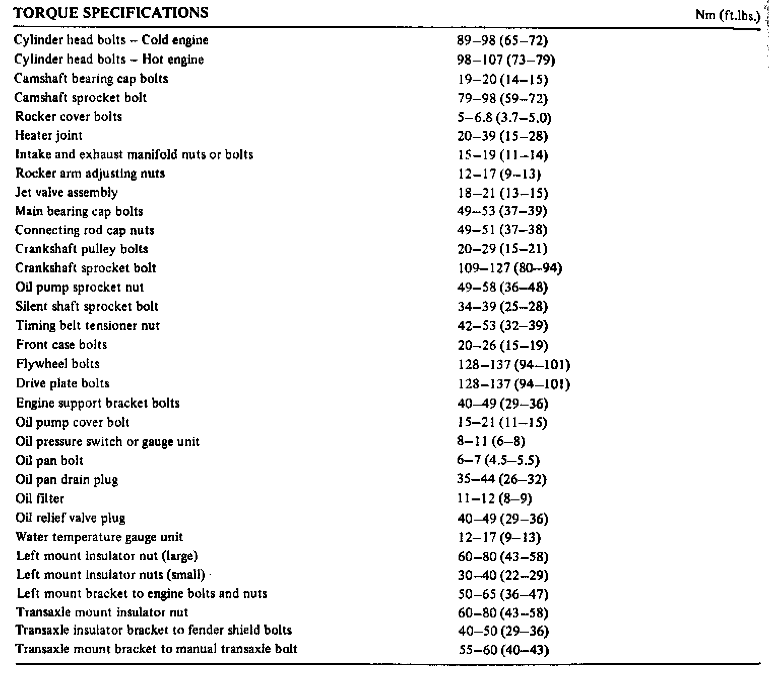 Torque Specifications