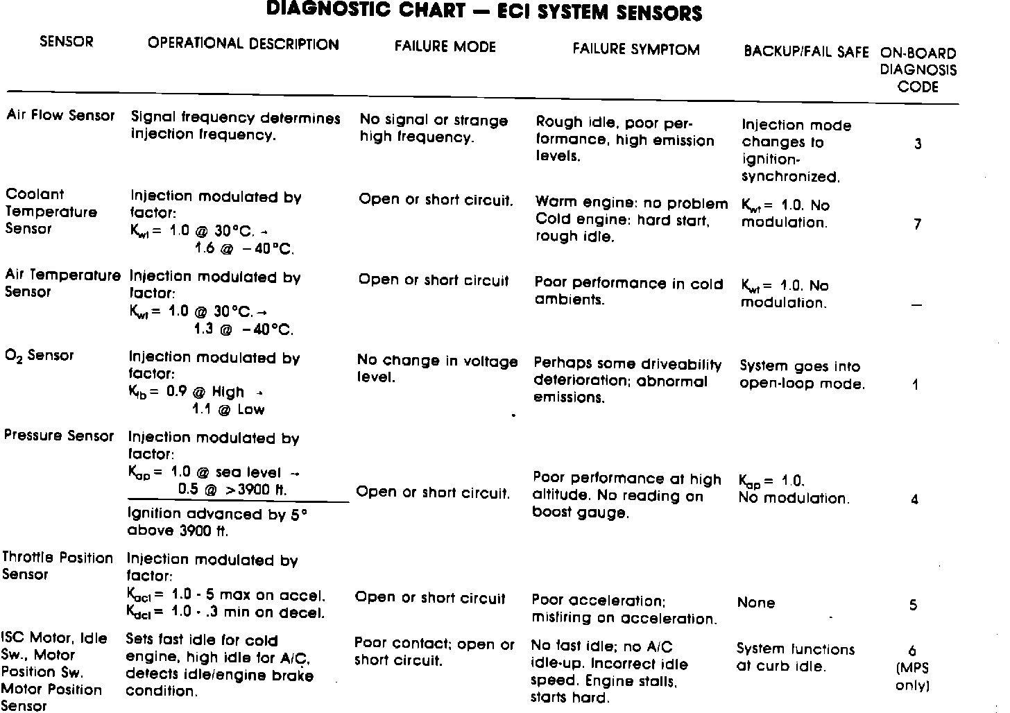 To help in diagnosing the ECI system, the following diagnostic chart should be helpful.