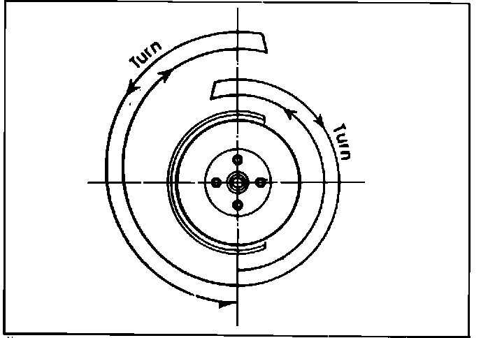 2. Turn the wheel one-half turn or more back and forth several times to be sure the bearing is seated. (Fig. 1)