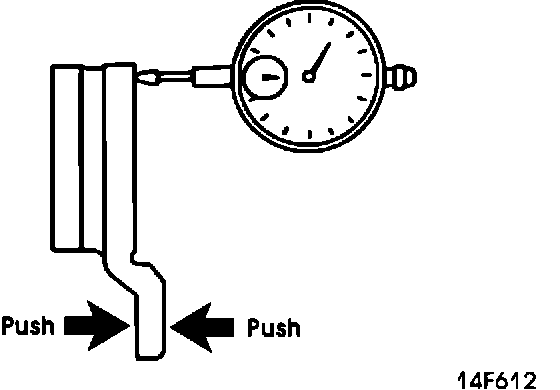 7. With a dial indicator on the brake rotor (Fig. 3), check that there is no axial deflection when the hub is pushed axially.