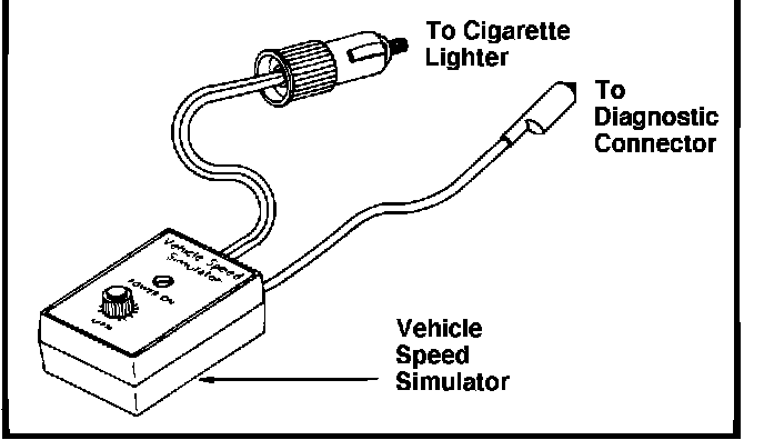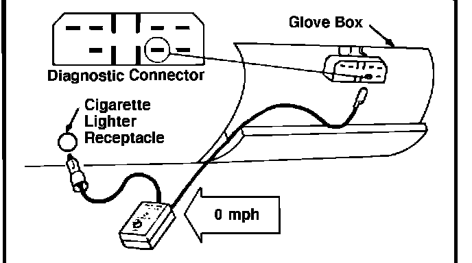 1. Connect the Vehicle Speed Simulator (Fig. 1) to the diagnostic connector behind the glove box and the cigarette lighter receptacle (Fig. 2). Be sure the vehicle speed knob on the simulator is set at 0 mph.