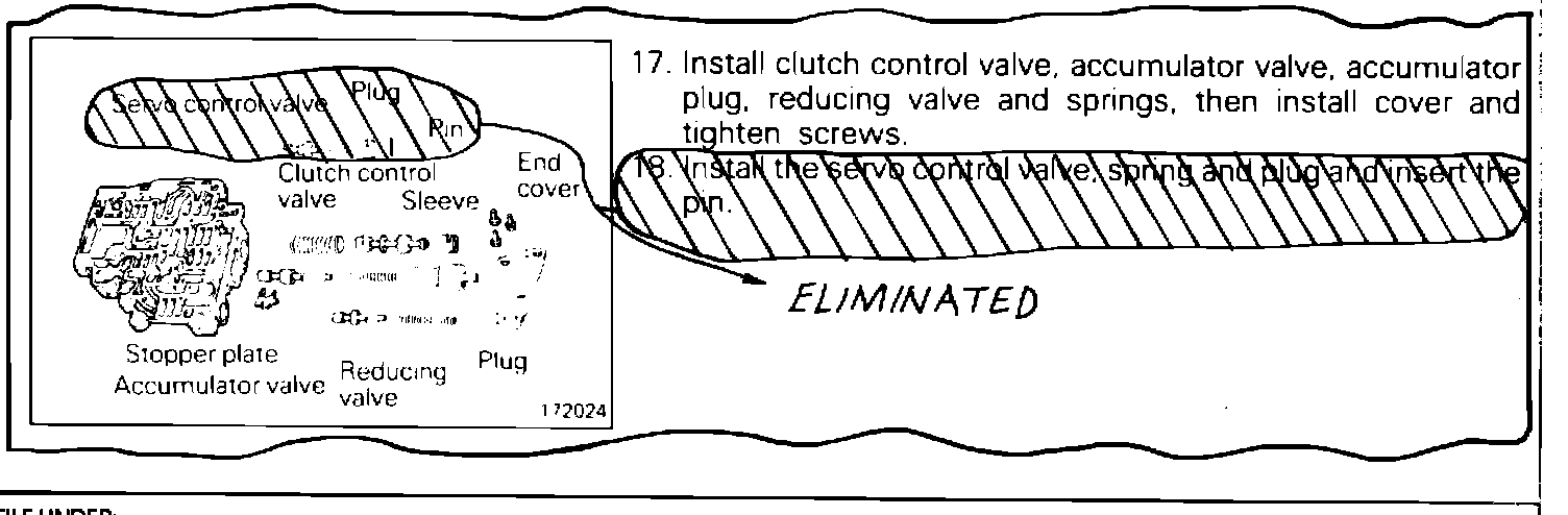 This bulletin is issued to update the 1985 and 1986 Mirage Service Manuals. Procedures in the disassembly and assembly of the transaxle have been altered as shown below. Please write the STB number in the STB revision box on each of the pages affected.