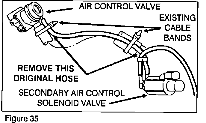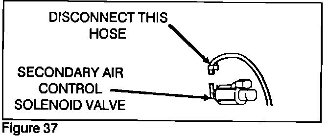 7. a. Disconnect the remaining original White Striped vacuum hose from the Secondary Air Control Solenoid Valve port (Figure 37).