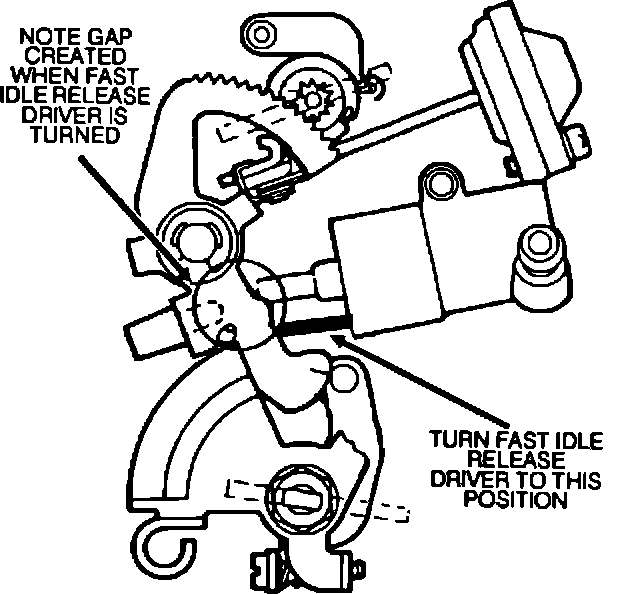 2. Using the Fast Idle Release Driver special tool, insert the tool between the thermo wax element housing and the choke linkage (Figure 10).