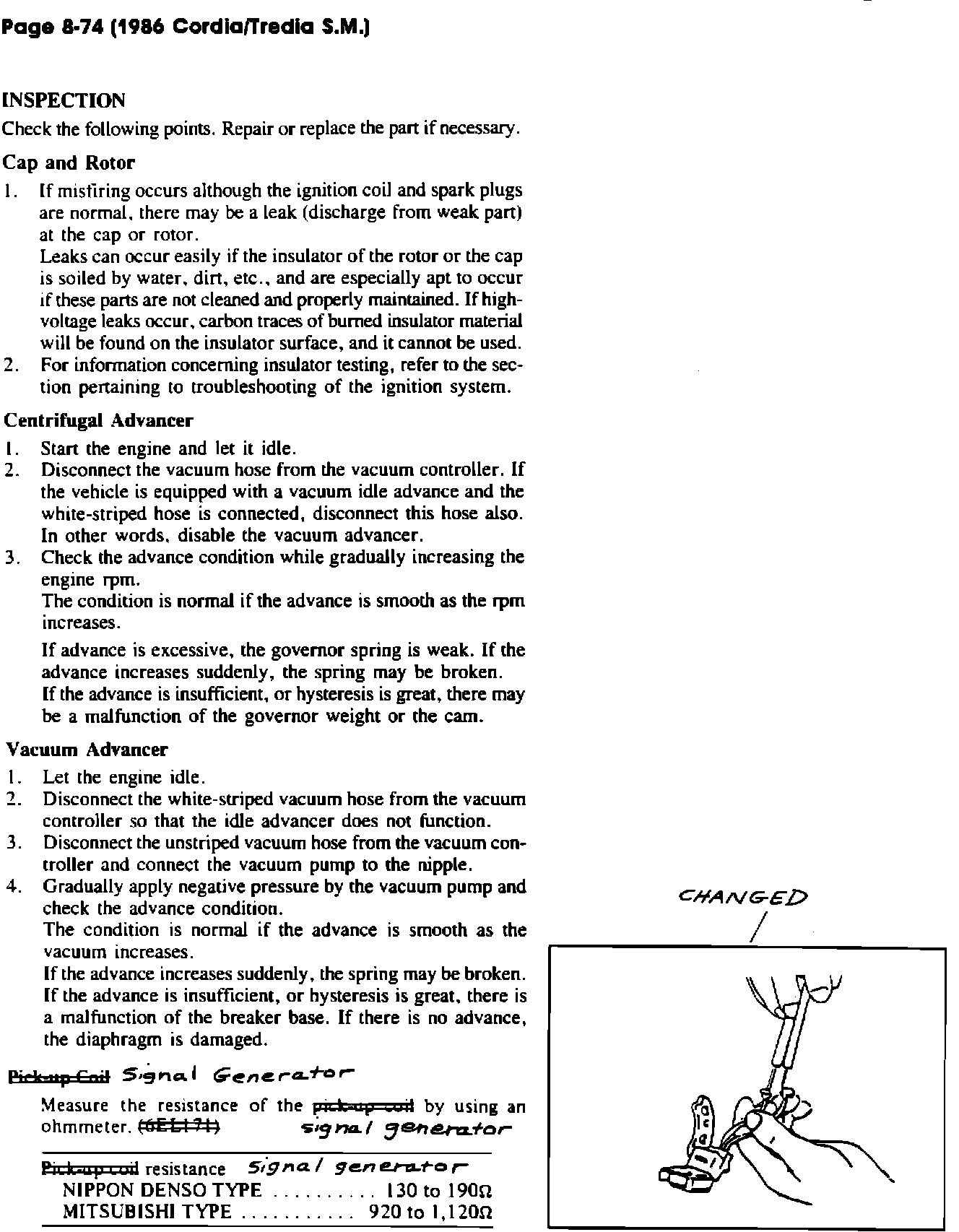 DISTRIBUTOR ASSEMBLY AND ADJUSTMENT - SERVICE MANUAL UPDATE
