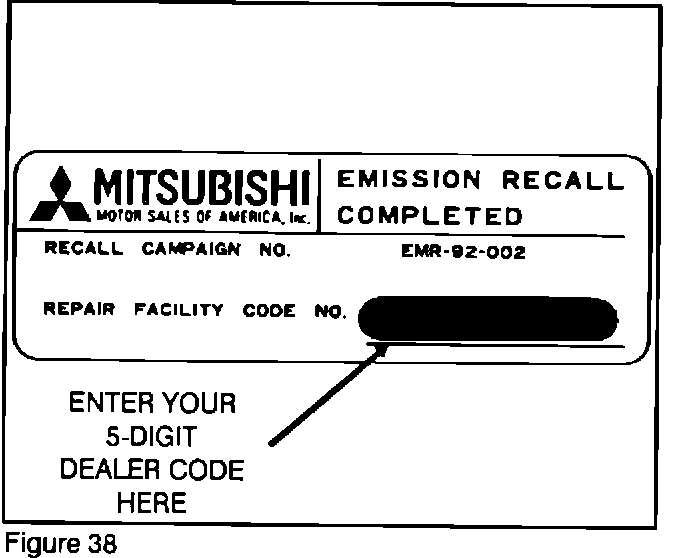 1. Write in your 5-digit dealer code under the white flap on the Emission Recall Completed Label (Figure 38).