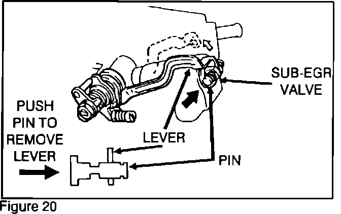 1. Push the Sub-EGR valve pin in the direction shown in Figure 20 until it stops. Raise the lever to disengage it from the pin.