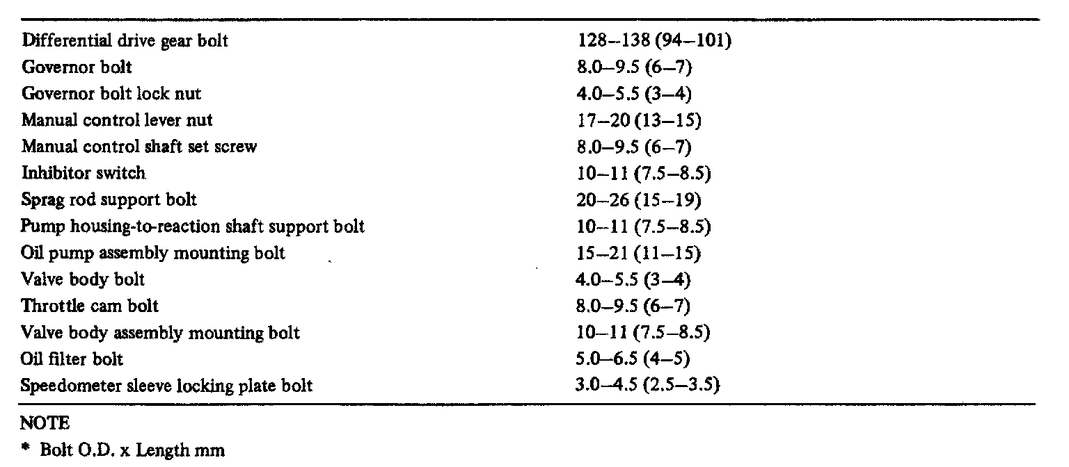 A/T Torque Data