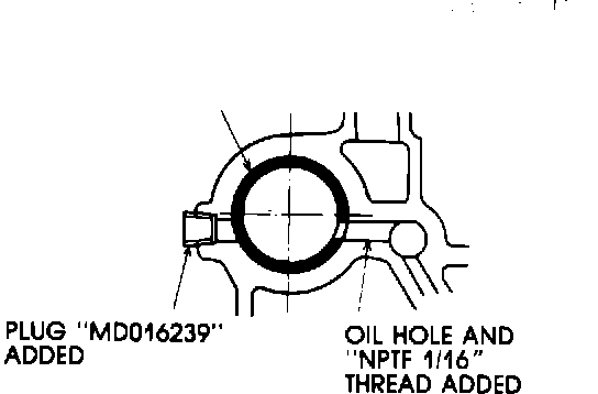 1. An oil hole has been added to provide direct lubrication to the right rear balance shaft bearing. This drilled hole is plugged with a 1/16" NPT plug which is visible from outside. See Fig. 1.