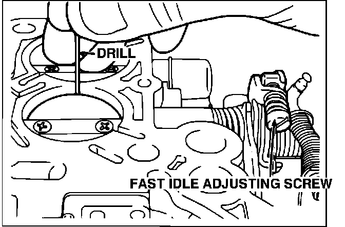 Adjustments are made by turning the fast idle screw (Fig. 1) until the drill just slips between the throttle blade and bore.