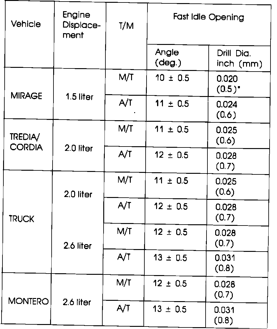 TABLE 1: 1986 - MODEL CARBURETOR FAST IDLE SPECIFICATIONS