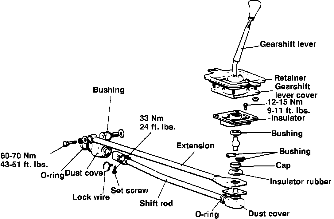 The snap ring and snap ring groove on the gearshift lever have been deleted and the fulcrum ball and related components have been modified. The components of the new lever assembly are shown below.