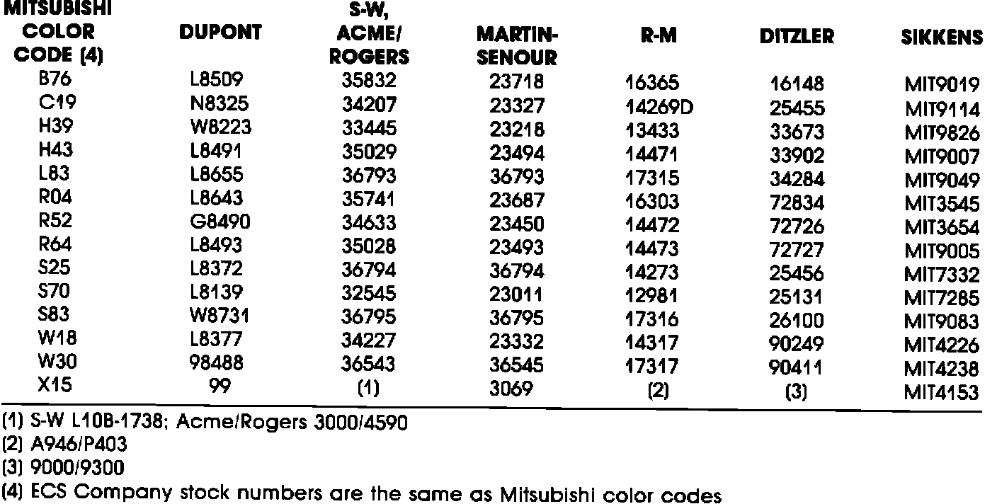 Manufacturers stock numbers for all 1987 exterior colors are given in Table III, Page 2.