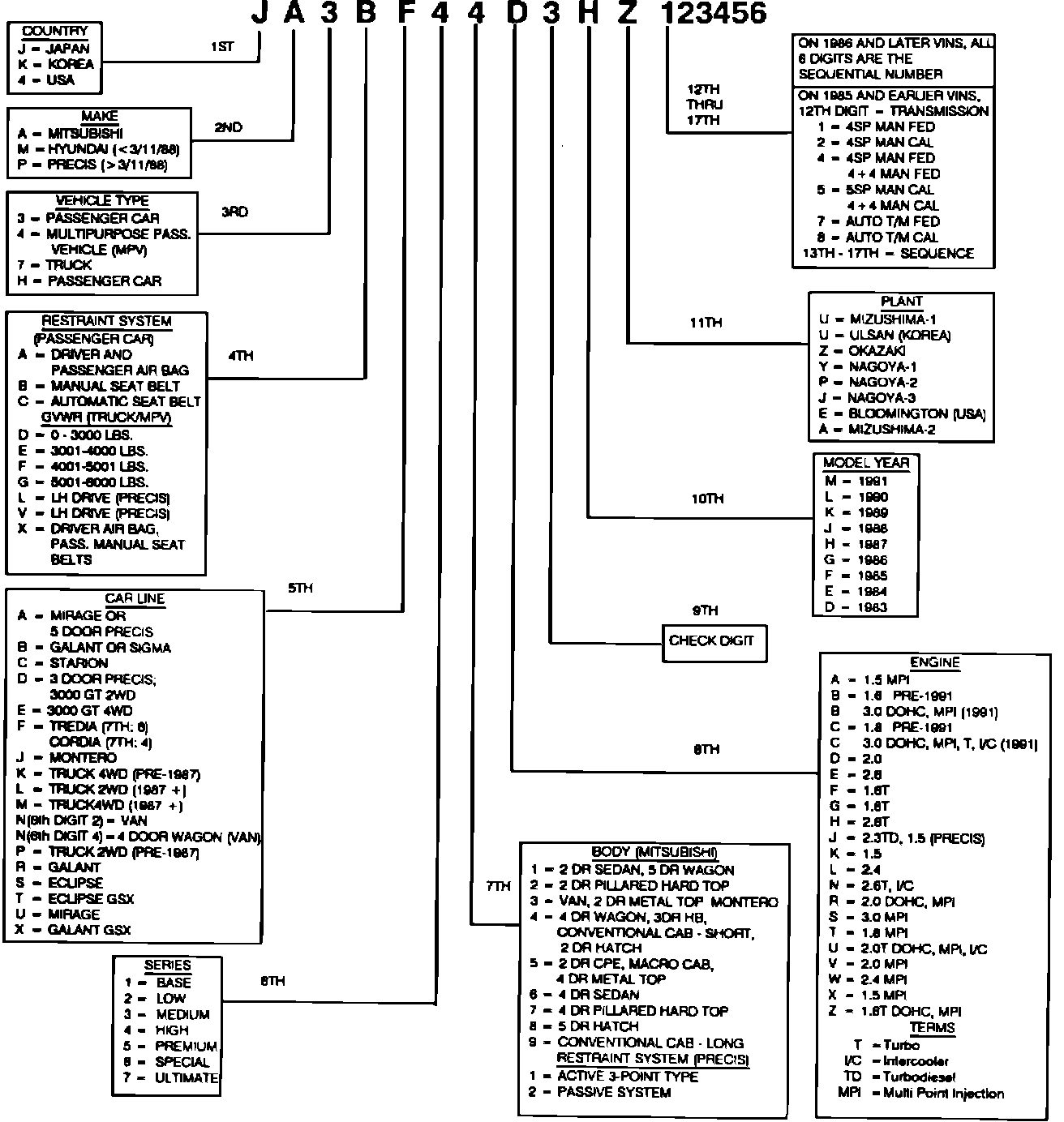 This bulletin contains information to decode the Vehicle Identification Number of all models of MMSA vehicles.