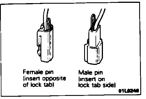 For female pin : Insert to the side opposite the lock tab side.