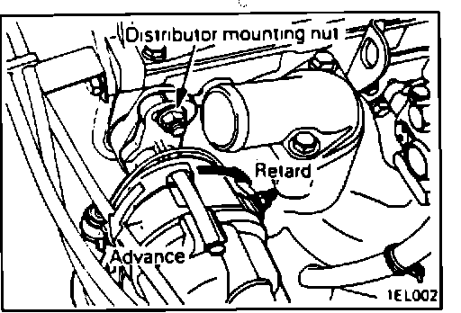 5. To adjust ignition timing, loosen distributor mounting nut and turn distributor housing.