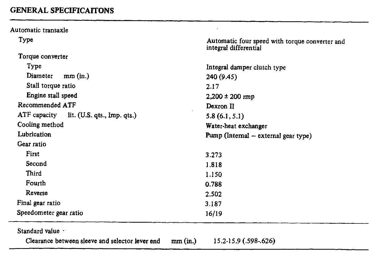KM175 4-spd A/T, Gear Ratios: