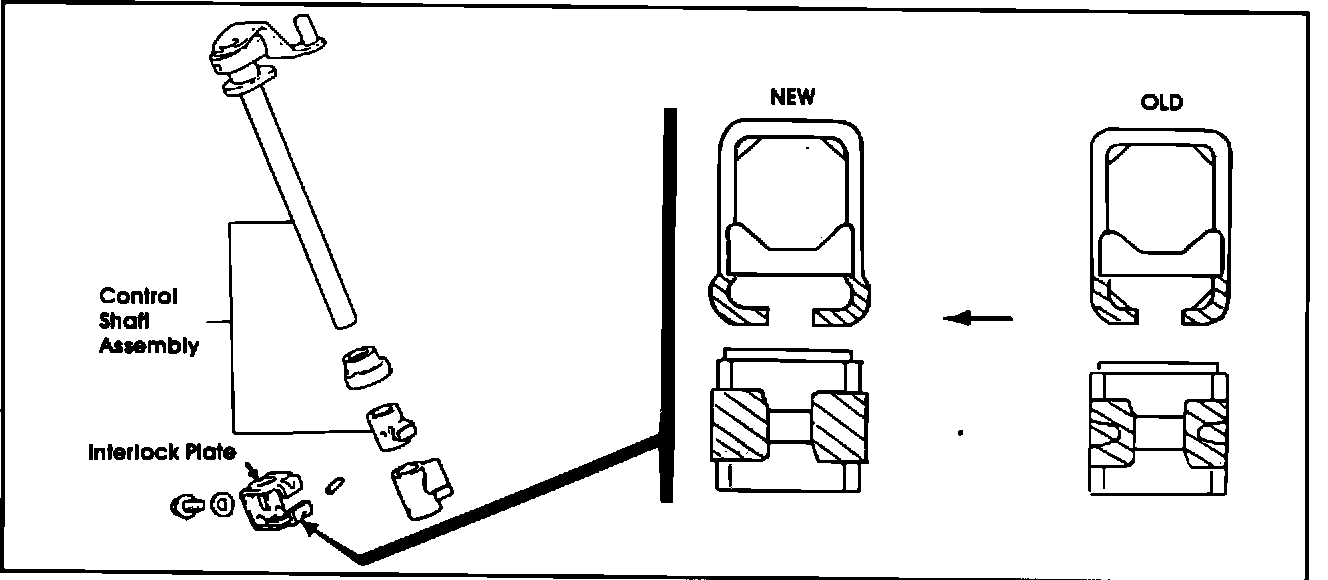 1. Interlock Plate Modification The shape of the interlock plate has been changed to reduce the possibility of double meshing (engagement of two gears at the same time). The modified interlock plate was added to vehicles beginning with the following date and transaxle number and is shown in Figure 1: