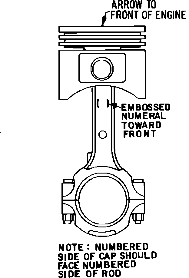 and rod is assembled with the indented arrow on the piston and the embossed numeral on the rod facing toward front of engine,