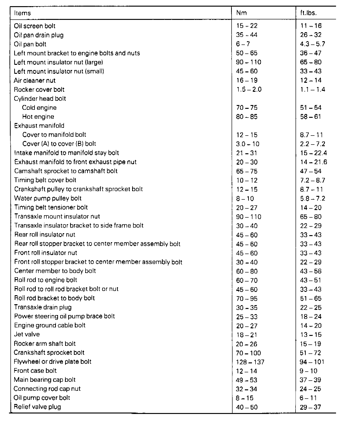 Torque Specifications