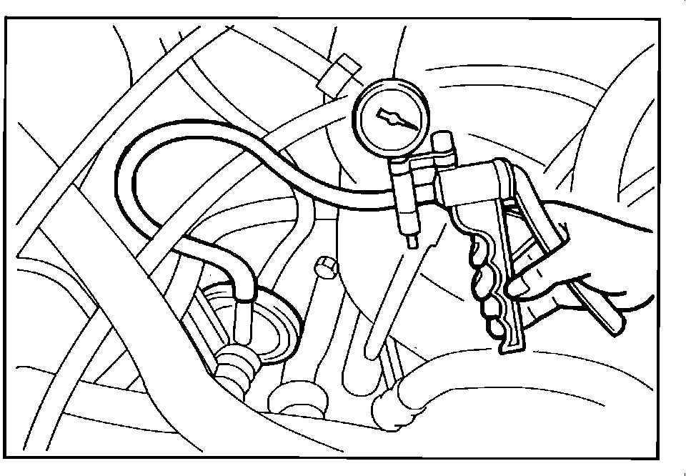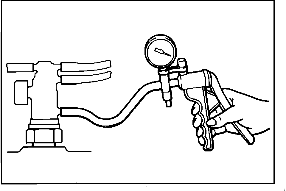 2. While the engine is cold [engine coolant temperature less than 50 degrees C (122 degrees F)] apply 53 kPa (15 in. Hg) of vacuum and verify that vacuum is held from idle to 2,500 rpm.