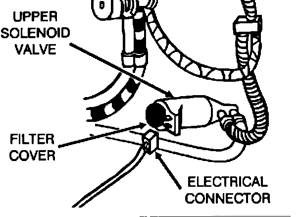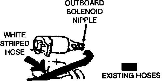 [ ] Short white striped vacuum hose on the white/red striped vacuum hose unit connects to the outboard nipple of the upper solenoid valve and is "TEED" to the existing white striped vacuum hose.