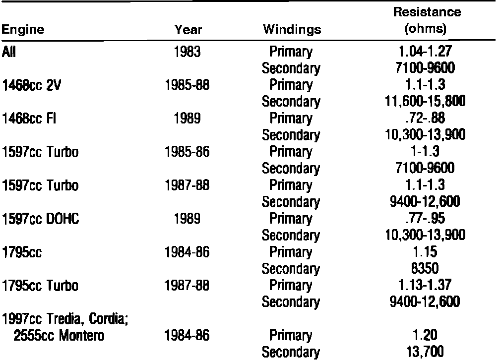 Fig. 7 Ignition Coil Specifications: