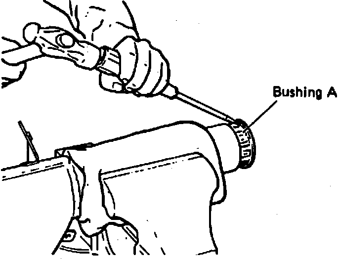 4. Using screwdriver, remove bushing ``A'' from left hand suspension arm, Fig. 19.