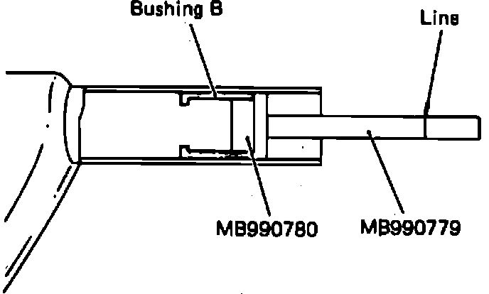 4. Using tools MB990779 and MB990780 or equivalents, press fit bushing ``B'' into left suspension arm until bushing reaches bottom of suspension arm, Fig. 21.