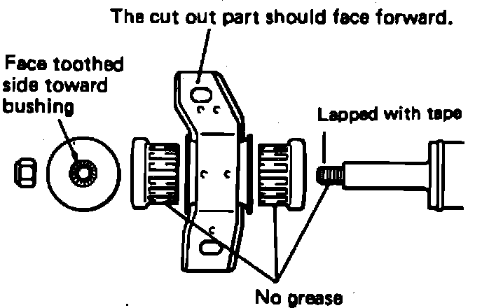 3. Apply suitable grease to inner edges of bushings ``A'' and ``B''.