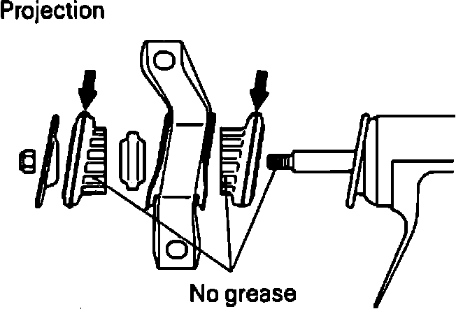 1. Apply suitable grease to inside of left suspension arm and on outer edge of right suspension arm. If dust cover was replaced, push new dust cover up to stopper positioned on right arm before applying grease.