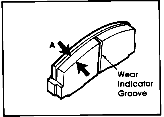 Because wear indicators have been added to the disc brake pads of some models, the pad thickness wear limit specification has been unified for all 1987 models (except Precis). The new and old pad thickness wear limits are shown below. The wear limit means that when the pad wears down to 2 mm (0.08 in.), the wear indicator groove is no longer visible and the pad should be replaced. As reference to this bulletin, write the STB number In the revision box and change the wear limit specification on the following pages of the affected Service Manuals.