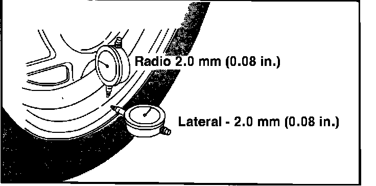 NOTE: If the wheel runout exceeds either the radial limit or the lateral limit, the wheel should be replaced.