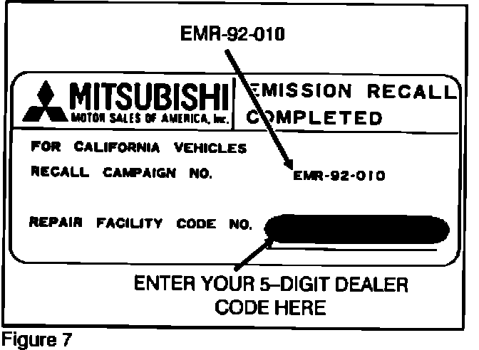 1. Write in your 5-digit dealer code under the white flap on the Emission Recall Completed Label (Figure 7).